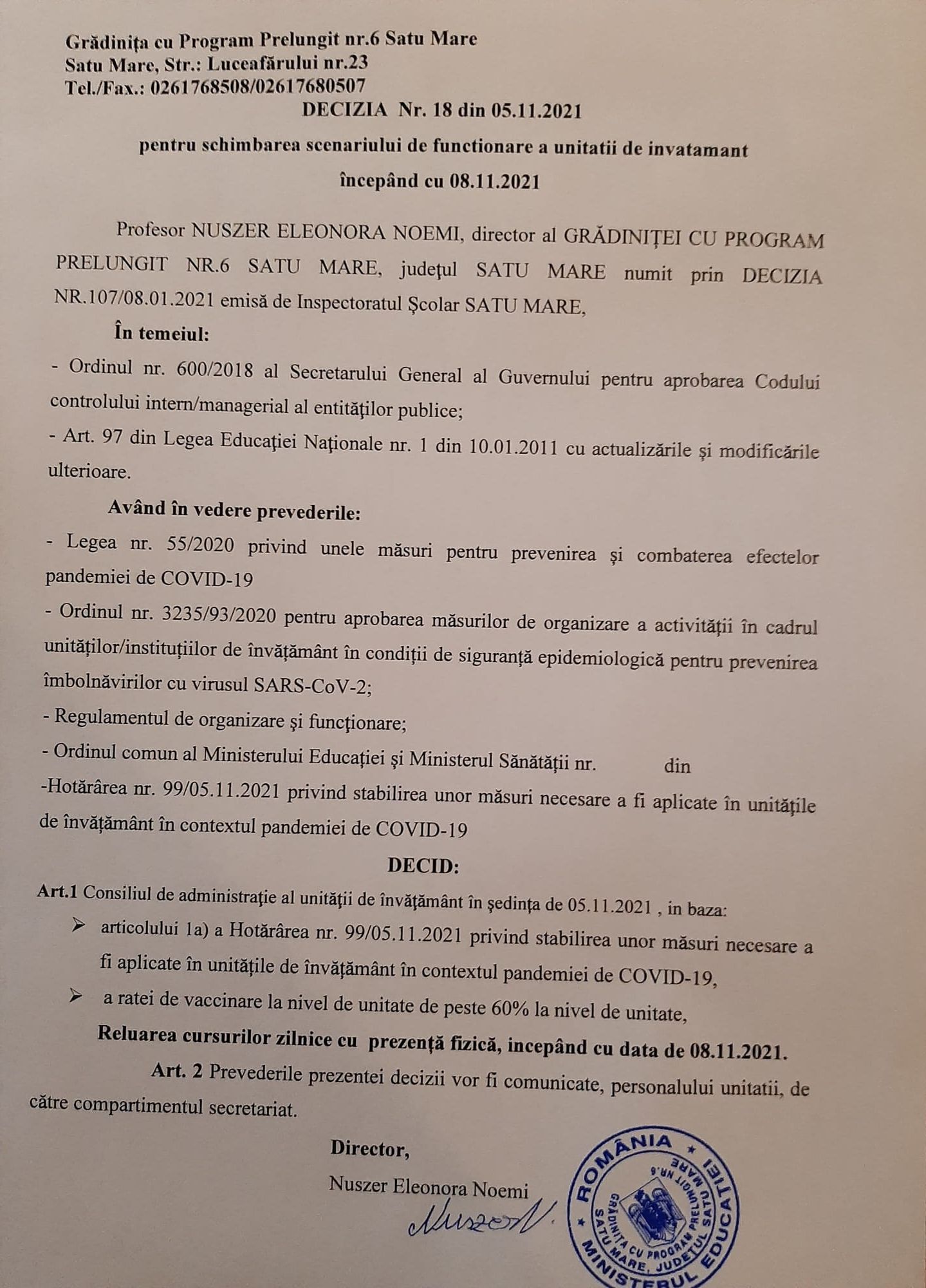 Scenariul de funcționare din 08.11.2021